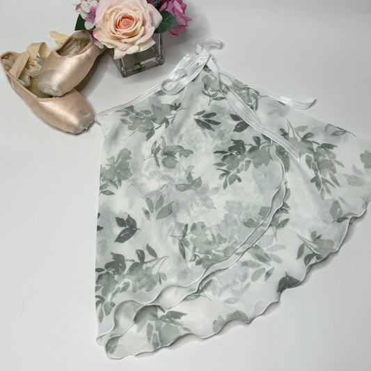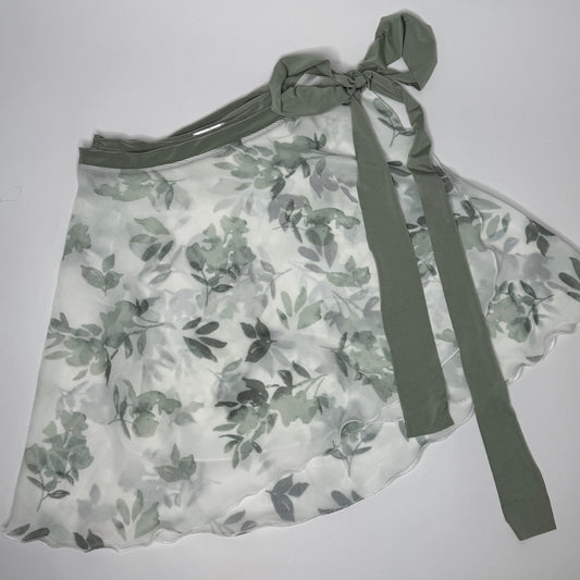 Edelweiss Green Floral Print Chiffon Ballet Wrap Skirt - Classical